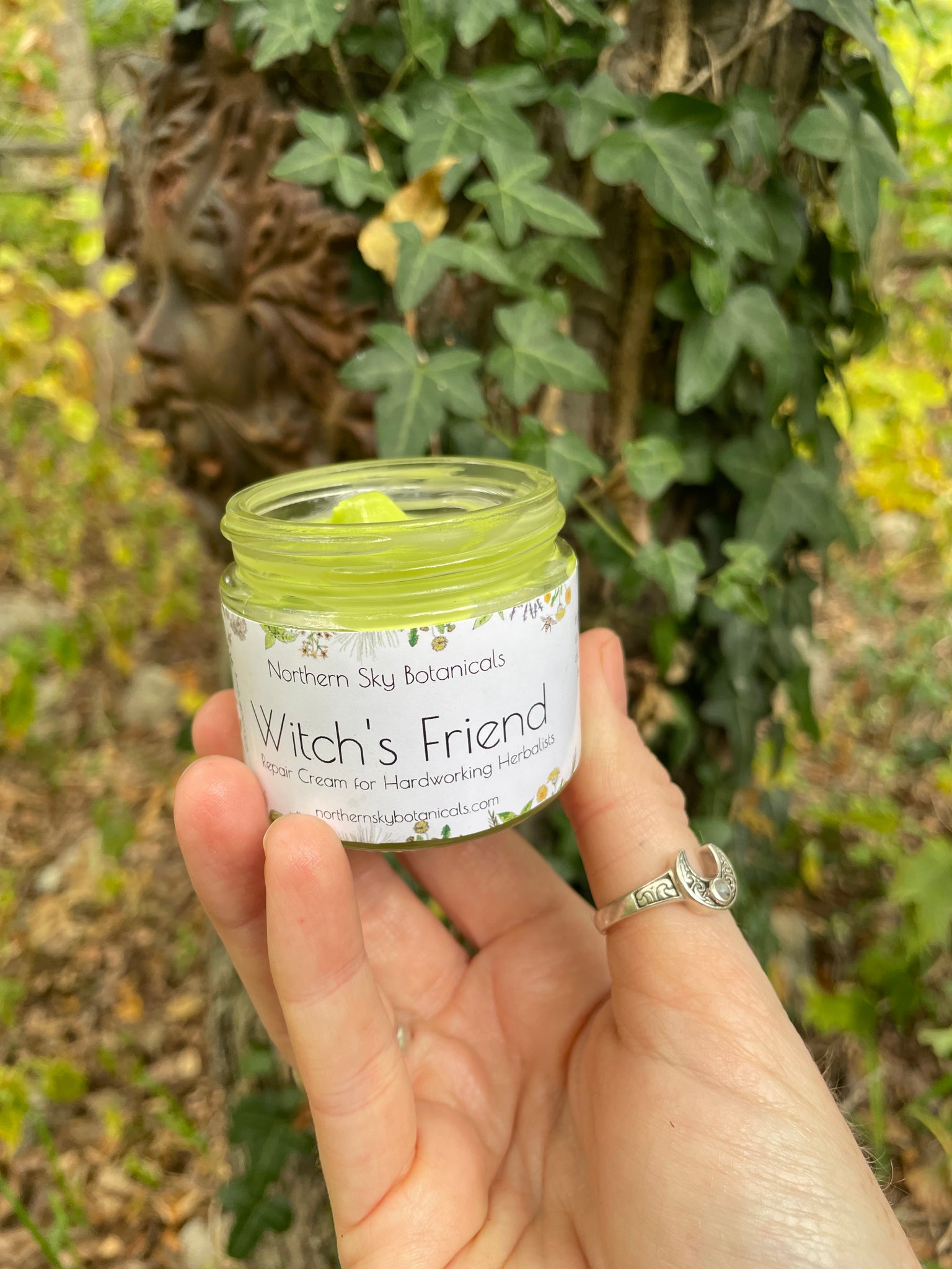 Witch's Friend is made with garden grown comfrey, lavender hydrosol, and nourishing plant based oils to repair dry, cracked skin. And it's got a subtle, relaxing lavender and coconut scent, too.