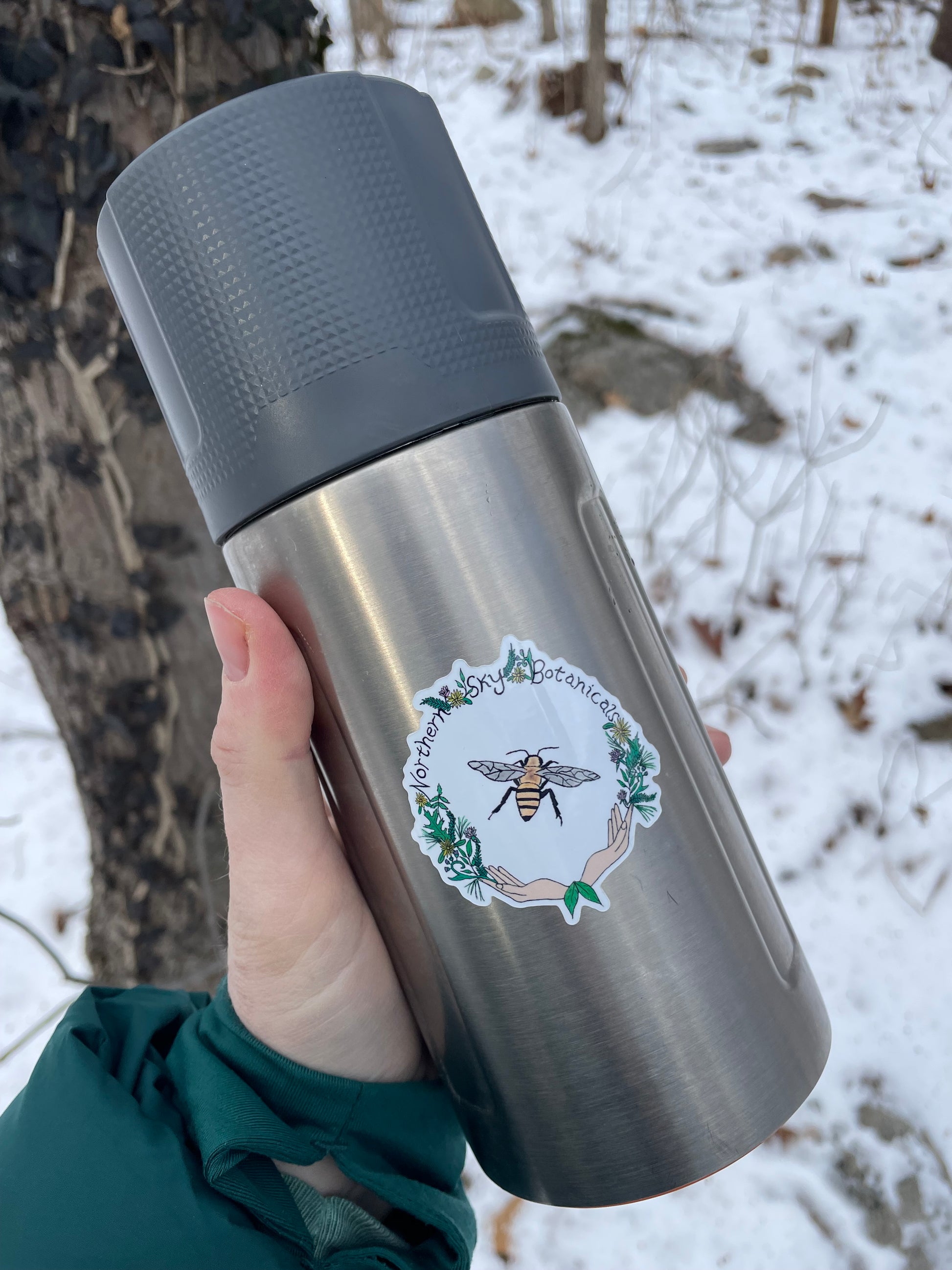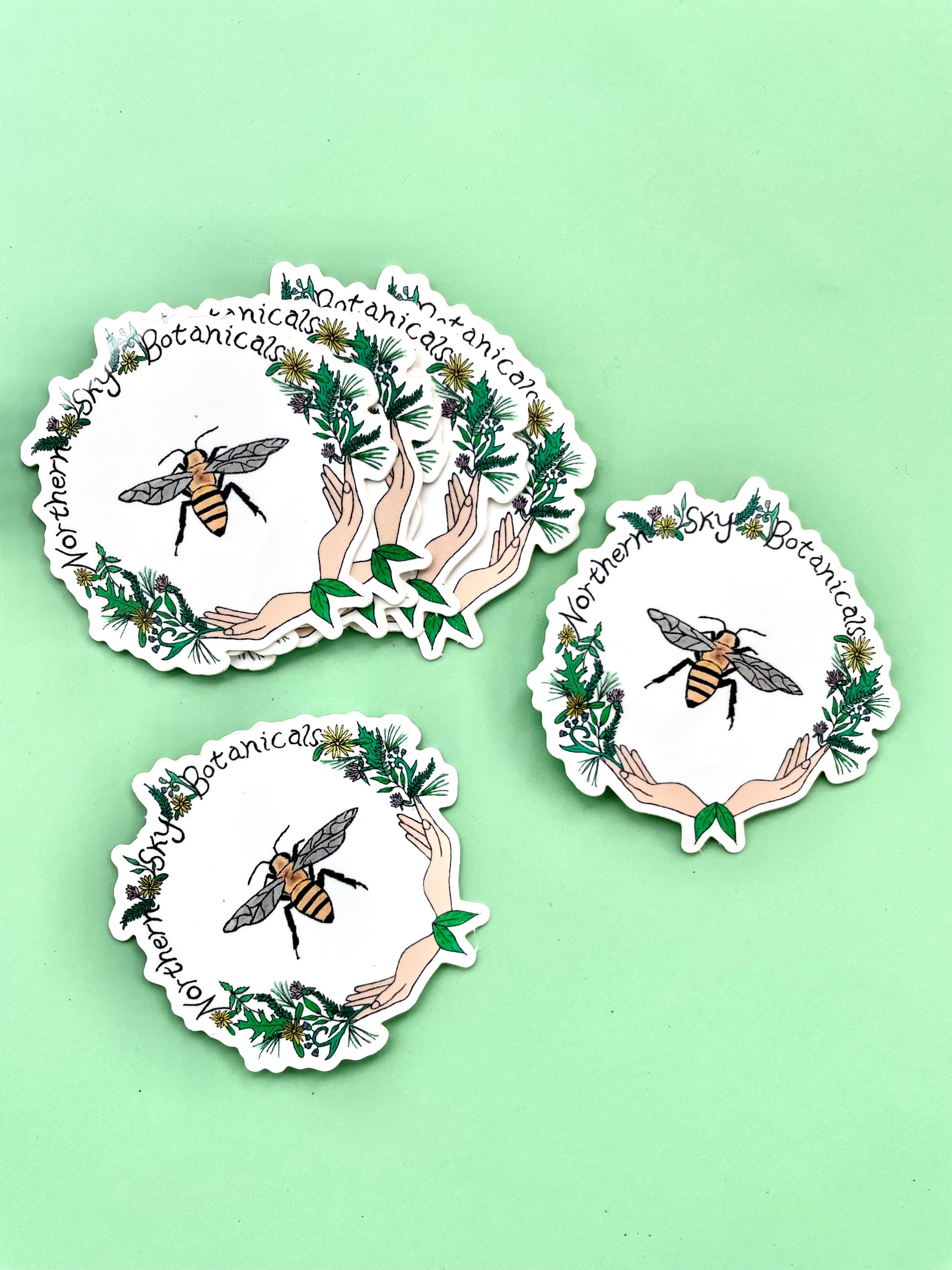 A durable, glossy vinyl sticker featuring the Northern Sky Botanicals logo and bee!